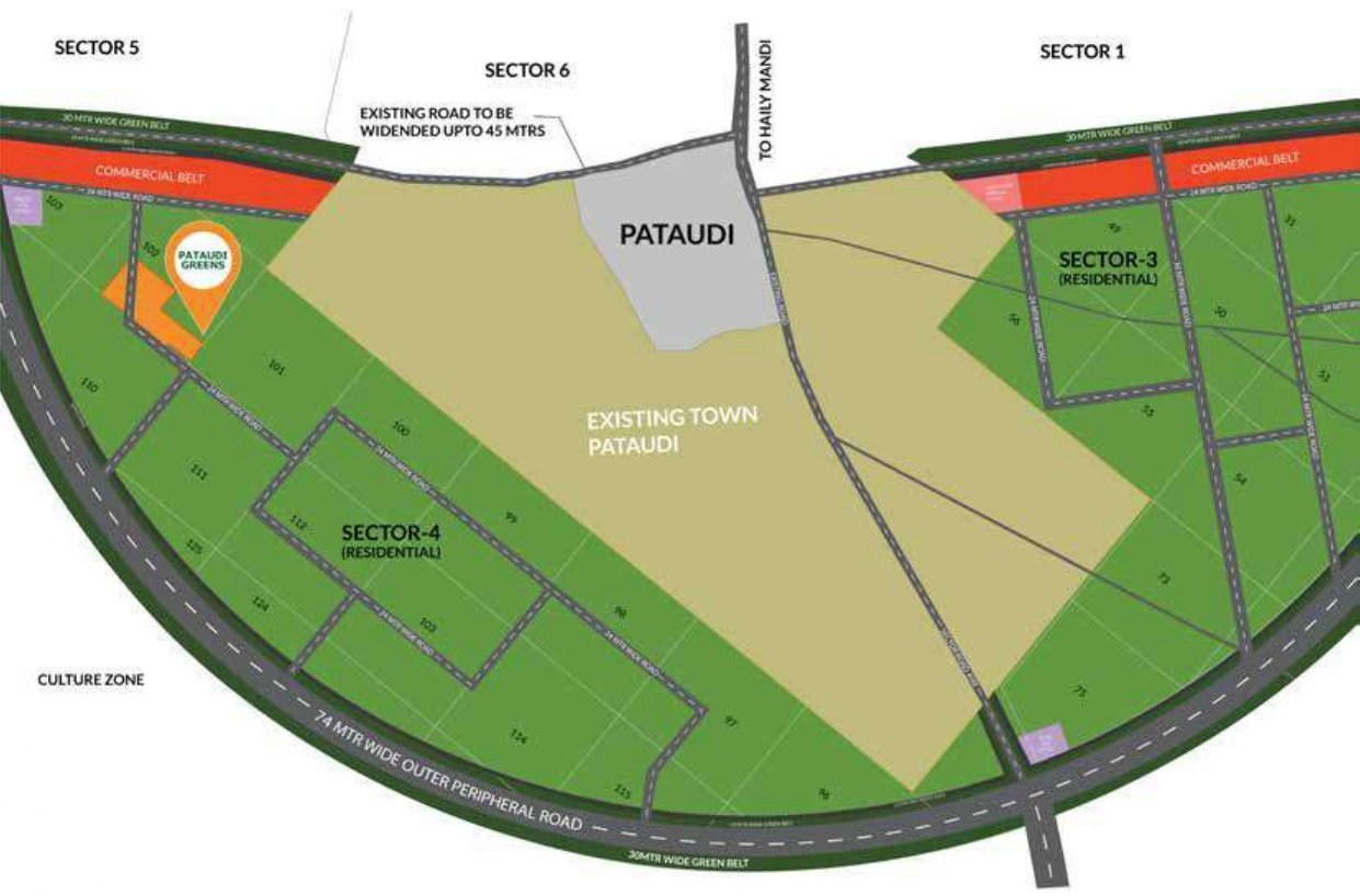 - Access & Connectivity: Proposed 24-meter wide sector road, currently accessible via a 33-feet wide Khor–Pataudi Road with direct connection to NH-352W